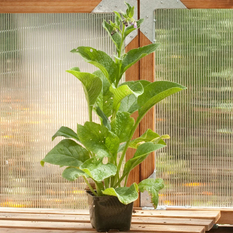 Herbaceous perennial native to Europe and hardy to -15 degrees F. Known for multi-purpose healing properties in herbal medicines, the plants are often associated with treatment of patients for osteoarthritis to reduce inflammation. It is also a staple in permaculture and as an animal food plant. Vivid purple, dangling flowers.